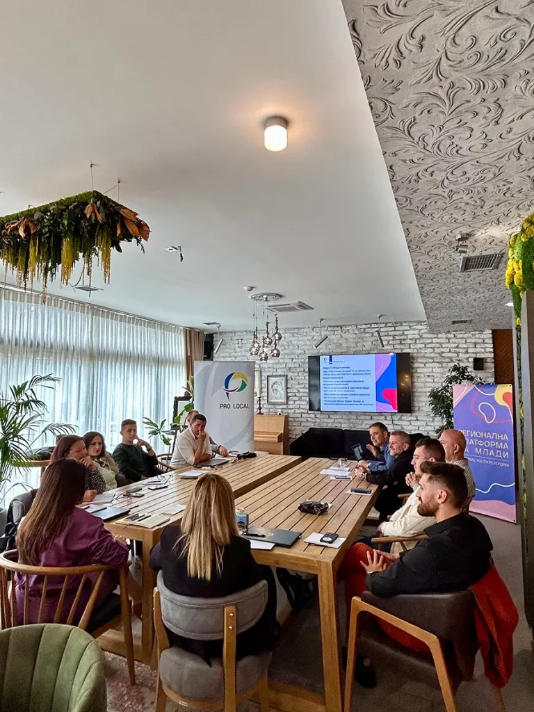 Дискусијата ја потенцираше улогата на младинските организации во секоја општина, кои треба да делуваат како активни и конструктивни чинители во локалната заедница, промовирајќи иницијативи што директно одговараат на потребите на младите. Разгледани беа и стратешките елементи на техничката поддршка што Про Локал ќе ја обезбеди за развој и одржливост на механизми и сервиси за млади, во целосна усогласеност со законската рамка. Фокусот беше ставен на воспоставување координирани и интегрирани системи кои овозможуваат ефикасно функционирање, континуирано подобрување и активно учество на младите, со цел обезбедување одржливи и квалитетни услуги. За прв пат се воспоставува партнерство со претставници од бизнис секторот, овозможувајќи нивно активно и конструктивно учество во развојот и унапредувањето на механизми и сервиси насочени кон младите, при што беше истакната и значајноста на комуникацијата и соработката со граѓанскиот сектор. Воедно, се укажа на недоразбирањата што можат да произлезат во комуникацијата помеѓу работникот и работодавецот, нагласувајќи потреба од поефективни механизми за размена на информации и усогласување на очекувањата. За секоја од овие теми беа донесени конкретни заклучоци и препораки, кои ја означуваат иницијалната точка на третата, завршна фаза од проектот, со цел да се обезбеди целосна и ефективна имплементација на предвидените активности.
