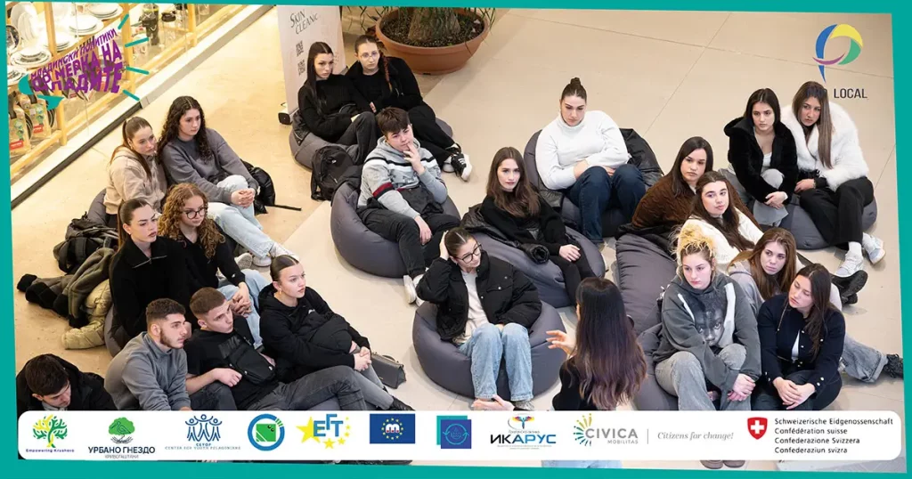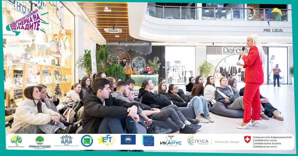 Активноста беше реализирана во простор кој природно ги собира младите – место каде тие се дружат, шетаат и носат секојдневни одлуки за купување. Токму таму се отвори дискусија за свесната потрошувачка, за емоционалната вредност што ѝ ја припишуваме на купувањето и за прашањето дали материјалните нешта навистина носат долгорочна среќа или чувството на исполнетост произлегува од внатрешната стабилност и самосвесност.